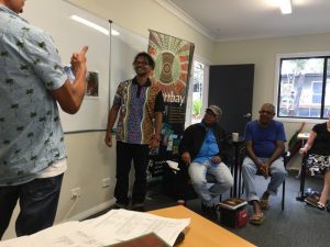This was an opportunity for the community to meet our new teacher linguist, Albert Burgman and to hear from them about what they wanted for their language. Meetings included lots of healthy discussion, and people voiced a strong need for community language classes for adults. As well there was an update on Muurrbay’s activities and a sample lesson in the language where people learnt some useful Darkinyung expressions like ‘Stand up’ ‘Sit down’ and ‘Come here!’ and a few basic words.Since then an Advisory Group has been formed to guide Albert’s work and they have met to set some guidelines. We hope to see some Darkinyung language classes for the community in the near future!
