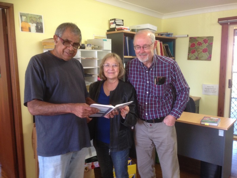 Linguist Harold Koch and Native Title Researcher Grace Koch recently visited Muurrbay following the Native Title Conference in Coffs Harbour. Harold has been a great supporter of Muurrbay over the years, in particular by reading early drafts of  Amanda Lissarrague’s Gathang  and Hunter River- Lake Macquarie dictionary-grammars, as well as having valuable input in the Handbook of Aboriginal Languages of NSW and the ACT. They stopped in on the Gumbaynggirr language class, and were pleased to see the latest publication, the Yaygirr Dictionary and Grammar.